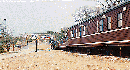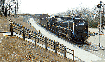 東福寺野自然公園のSLは1977年7月のオープン以来、入り口左側に東西に向かって設置されていた。これを2000年11月、市の公園整備事業の一環として現在のSLを150m移動し、かつ北南に向かって連結をする工事に着手。移動に際しては、公園が休む冬期間を利用しての工事でした。約3年の期間、困難を要した末、無事移設と整備を完了しました。移動のときは、動輪やピストンもしっかり動きました。D51の重さは、機関車が約80トン、炭水車が約40トン。全体で約120トンもありました。