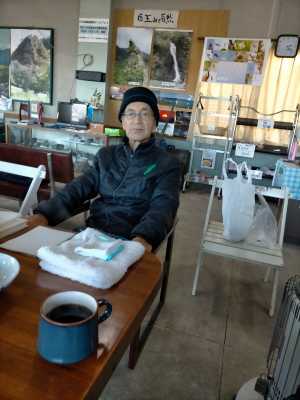 今回も地元福光山岳会が登っておられて、遅れて着いた私たちは外でベンチを作って輪になった。