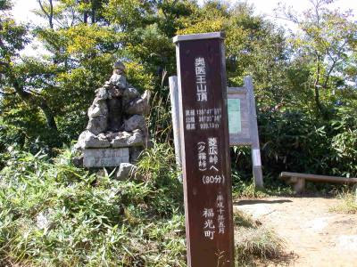 奥医王山が見えている。 大きな看板にルート図があり 歩いて30分程の行程だ。 次回の偵察程度に考えて来たのだが ここまで来たら登らんにゃ!と思い直す 登山靴に履き替え、山シャツに着替えて出る。 登山道は疑似木の階段が続き どろどろの湿地も幾つかある。 紅葉にはまだ早くやや色ずく程度 |
