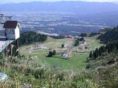 スキー場は広い駐車場と赤い屋根のバンガローやケビンなどカラフルな建物が建ち並び明るい高原だった。