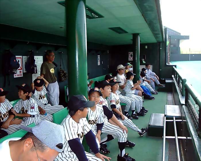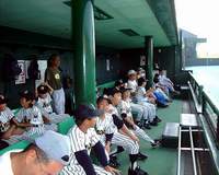 | あの、憧れのイチローも座った ベンチで、試合を見守る選手達 |