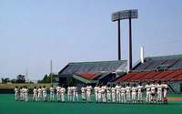 | 「お願いしま〜す。」 | キャッチャーの成瀬友輔君 「声出して、締まって行くぞ〜」 |