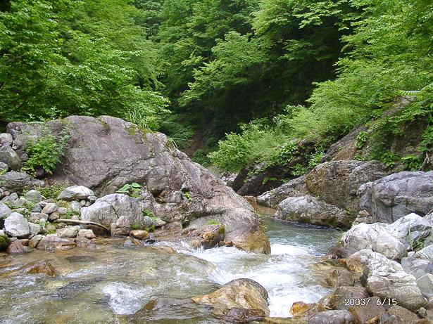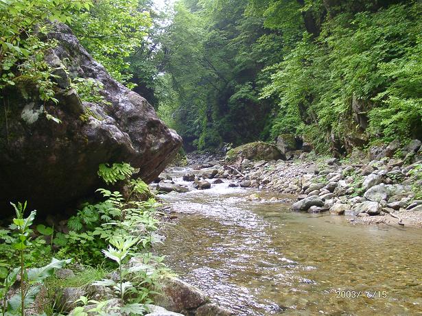 久しぶりの釣り 3年ぶりかな?イワナ 2002/ 7/21 連日の山行脚 体感温度22~3度 下界では34.4度 |
