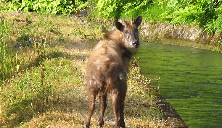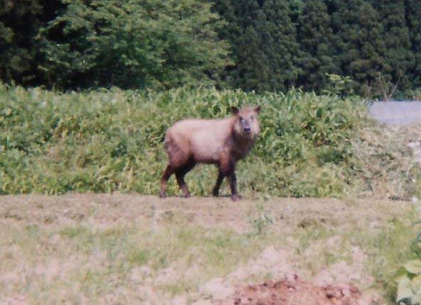 やっと撮ったカモシカ我が田圃の畦で 露湿不測で ぼけてしまった?? |
