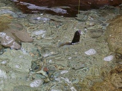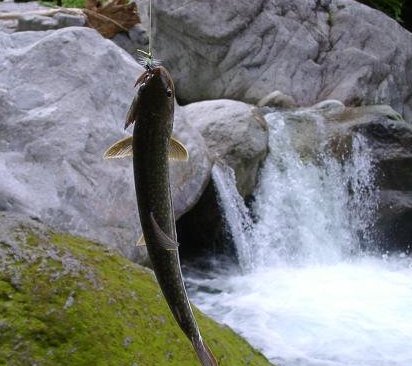 テンカラ釣りは 餌釣りと違って 針を飲み込ませないので 魚が傷まないリリースも用意に行える |