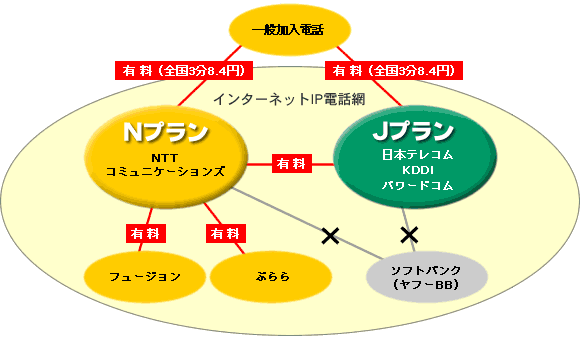 Jプランの利用者や、無料接続提携プロバイダーのIP電話利用者への通話