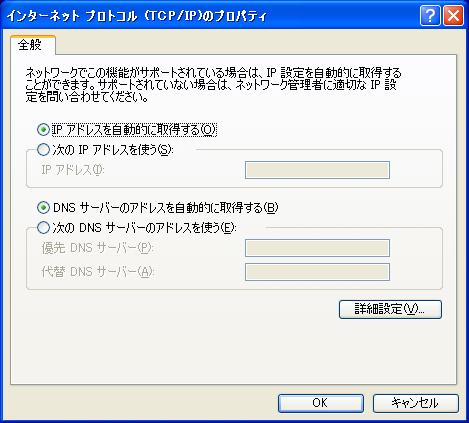 - 『IPアドレスを自動的に取得する』をチェックします。
