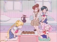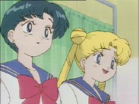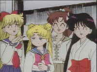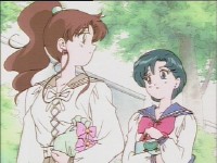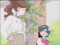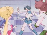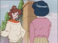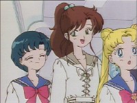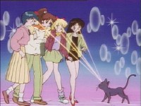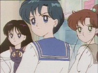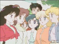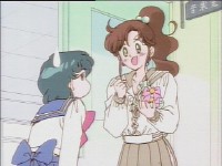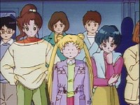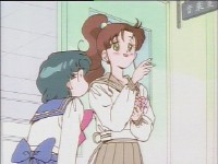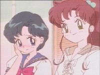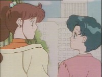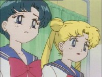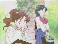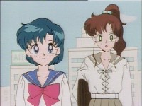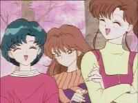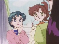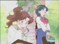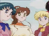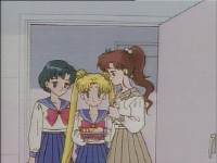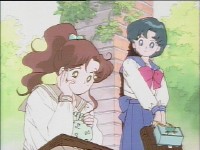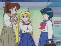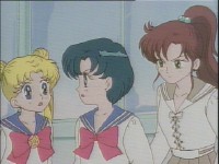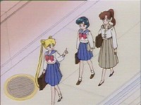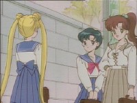 「どうしたんだい? 元気ないぞ」 「学校で何かあったの?」 一人で帰るうさぎに声をかけるまこ亜美。 うさぎが単独行動した場合でも、まこちゃんと亜美ちゃんは一緒に帰ってるって事が初めて映像に現れた回であります。