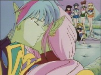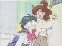 優しく亜美ちゃんの肩を抱き、そっとうさぎの方に押してあげるまこちゃん。 いやぁ、この優しさですよ(^^) まこちゃん、いい娘ですねぇ。 この場面はね、ここで紹介するには小さすぎるので、やっぱり実際ビデオ等で見てほしいですね。 |