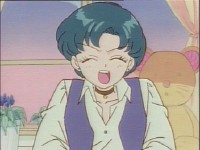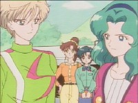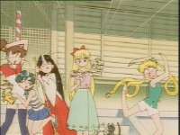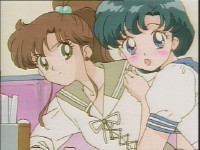 恋人ゲームに参加するはるかとみちる。 「あの二人、ほんとうにそういう関係なのかしら…」 言ってしまってから赤面する亜美ちゃん(^^) そーいえば、この前のシーンでも「何か参考になれば」って言ってたもんねぇ。何のだ何の(^^; |