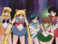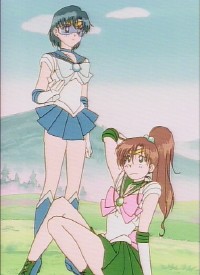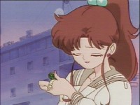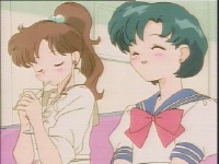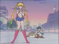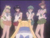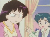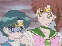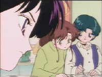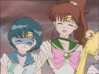 まこちゃんに手を貸す亜美ちゃん。 Sでは総じて互いに相手を気遣う姿勢(勉強であれ戦闘であれ)が、前面に出てきたような気がします。 そういう事はS以前にも確かにあったのだけど、他の人の前であっても自然にそういう行動がとれるようになったのは、互いの気持ちを分かりあえるようになってきたのに加え、はるかとみちるの影響、そして何よりうさぎやレイが「亜美ちゃんにはまこちゃん(可逆有効)」という認識ができてきたからではないでしょうか。 |
